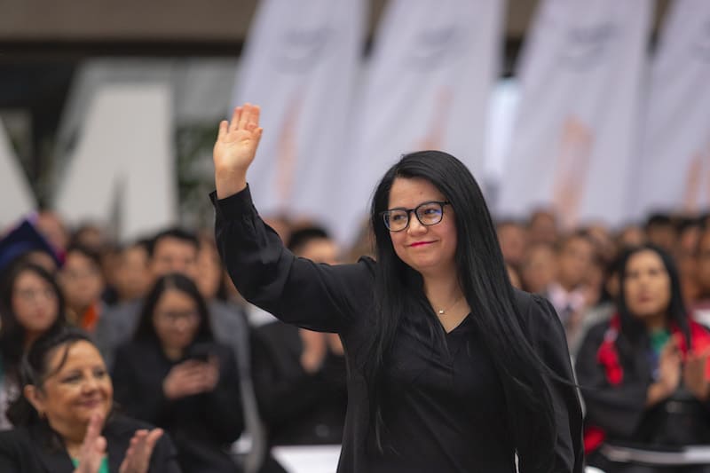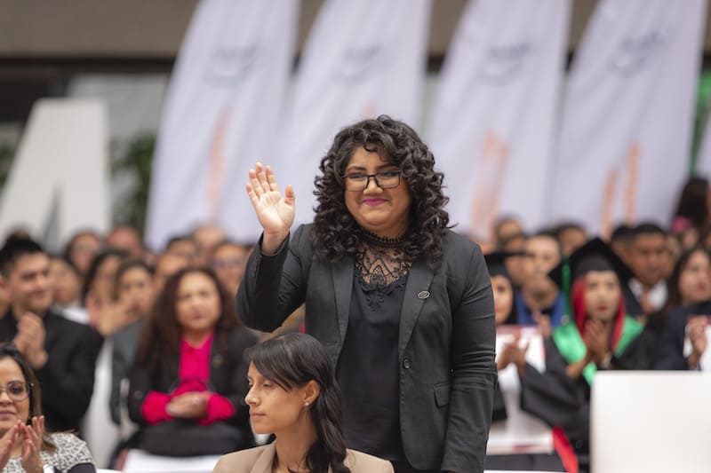 En un escenario dispuesto en forma circular, egresadas y egresados escucharon el mensaje de las autoridades y los invitados especiales, como Mario Delgado Carrillo, Secretario de Educación Pública, y Marlenne Johvana Mendoza González, Directora General de Universidades Tecnológicas y Politécnicas, en representación de Carmen Enedina Rodríguez Armenta Directora General de Educación Superior Universitaria Intercultural y Encargada del Despacho de la Subsecretaría de Educación Superior.