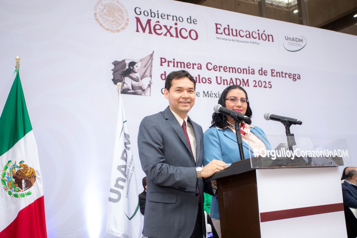 La emoción creció aún más cuando se proyectó un segundo video, esta vez con un tono más histórico y expansivo. En él se recordó cómo, desde su origen como programa piloto en 2008, hasta su consolidación como universidad formalmente constituida, la UnADM se ha guiado por los principios de inclusión, apertura y flexibilidad. El material destacó su matrícula actual, que supera los 120 000 estudiantes, —la mitad de ellos mujeres— y más de 20 000 egresadas y egresados También se presentaron algunas de sus iniciativas más recientes: el proyecto UnADM Saludable, las certificaciones para el trabajo a distancia, 100 Técnicas Didácticas y los pódcast realizados junto con el Instituto Mexicano de la Radio, que ya suman más de 100 000 reproducciones. Todo con un mensaje claro: la UnADM no solo forma profesionistas, sino agentes de cambio.